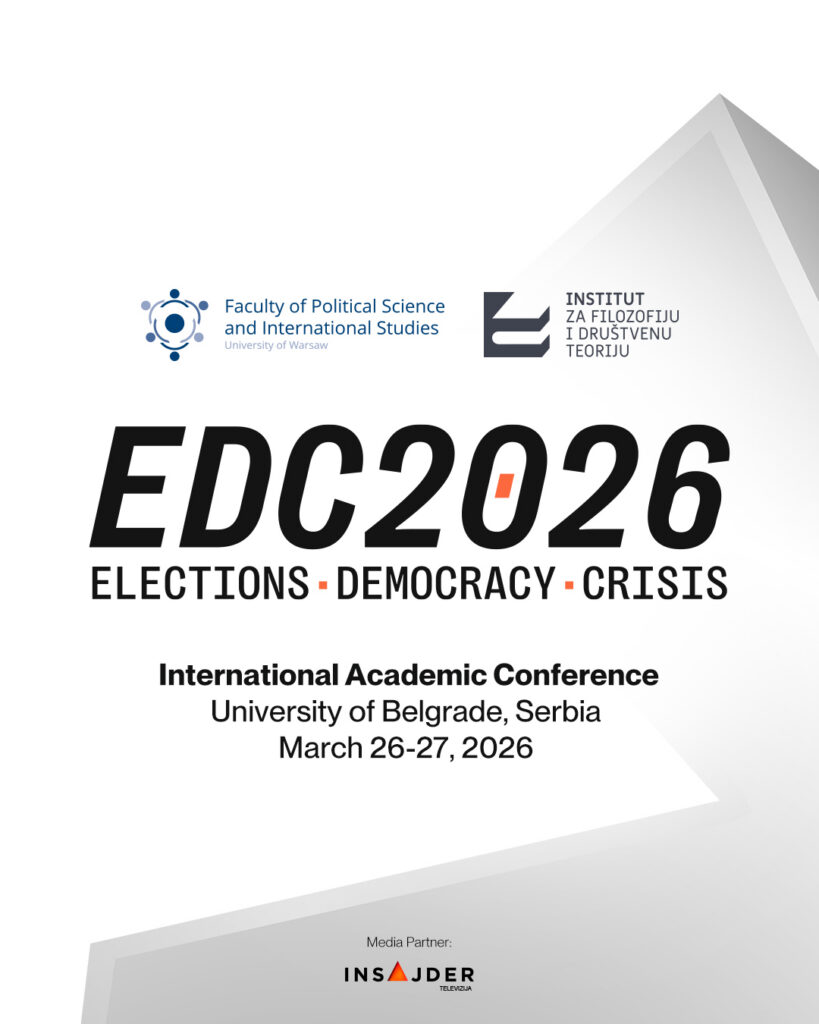 Zapraszamy do udziału w międzynarodowej konferencji naukowej EDC 2026 (Elections – Democracy -Crisis), która odbędzie się w dniach 26–27 marca 2026 roku na Uniwersytecie w Belgradzie .