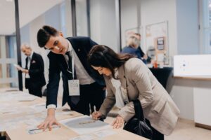 Pierwszy dzień obrad poświęcono relacjom między sferą akademicką a biznesem. W panelu moderowanym przez prof. Katarzynę Kołodziejczyk dyskutowano o modelach współpracy oraz wpływie otoczenia gospodarczego na kierunki badań. W dyskusji udział wzięli przedstawiciele uczelni m.in. prof. Adam Bartnicki (Dziekan Wydziału Stosunków Międzynarodowych UwB), prof. Szymon Ossowski (Dziekan Wydziału Nauk Politycznych i Dziennikarstwa UAM) oraz praktycy biznesu, dr Ewa Łabno-Falęcka (Mercedes-Benz VANS Project Jawor) i Przemysław Pohrybieniuk (Art of Influence).
