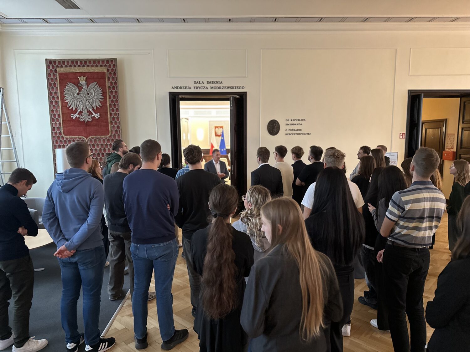 Studenci naszego Wydziału mieli okazję uczestniczyć w wizycie studyjnej w Kancelarii Prezesa Rady Ministrów. W trakcie spotkania poznali kulisy funkcjonowania administracji rządowej oraz zobaczyli od wewnątrz, jak przebiegają spotkania Prezesa Rady Ministrów i członków Rządu.