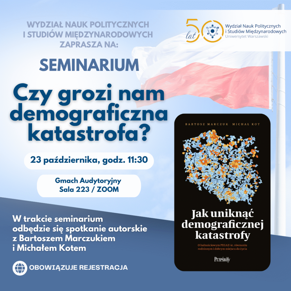 Serdecznie zapraszamy na seminarium pt. Czy grozi nam demograficzna katastrofa? z udziałem Bartosza Marczuka i Pawła Kota – autorów książki Jak uniknąć demograficznej katastrofy?