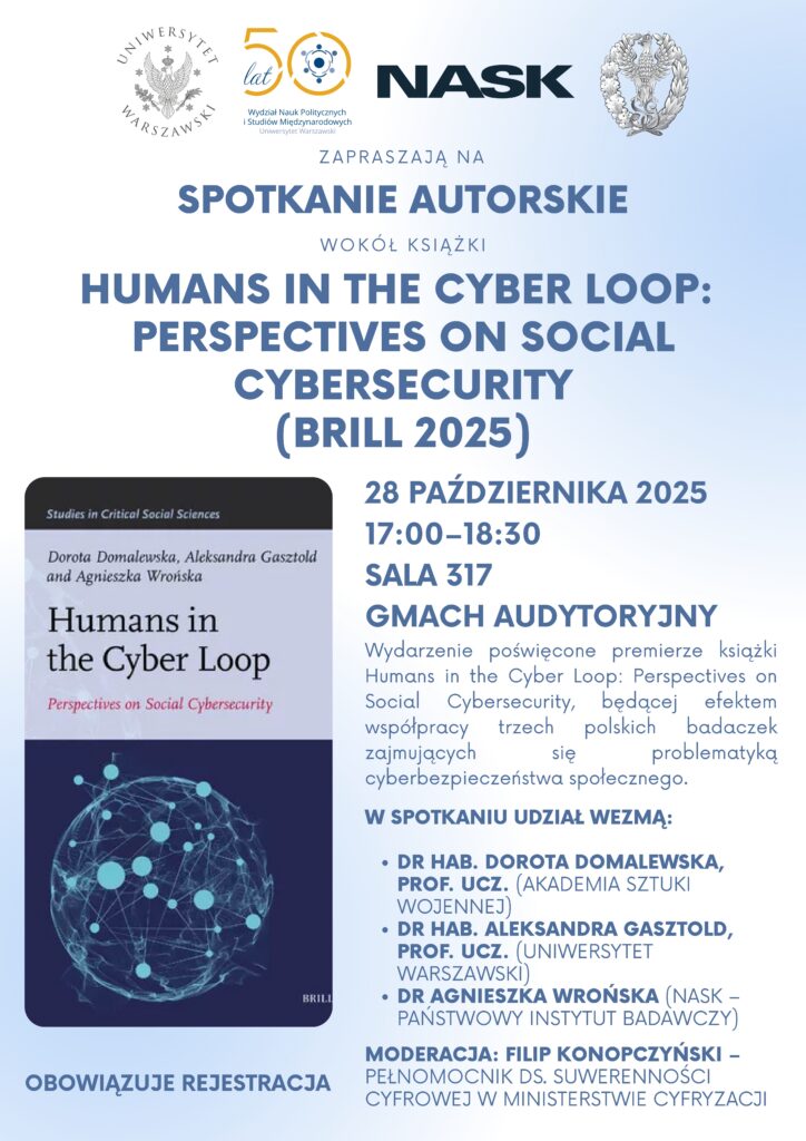 Zapraszamy na spotkanie autorskie poświęcone publikacji Humans in the Cyber Loop: Perspectives on Social Cybersecurity (Wydawnictwo Brill).